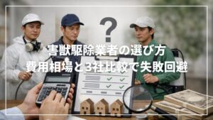 - 費用と内容を比較したい場合は、害獣駆除屋で同条件3社の相見積りを取り、報告書や保証の違いを見ながら決める。