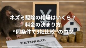 - 見積りは作業範囲・数量(薬剤量/設置数)・保証を同条件にそろえて3社比較。